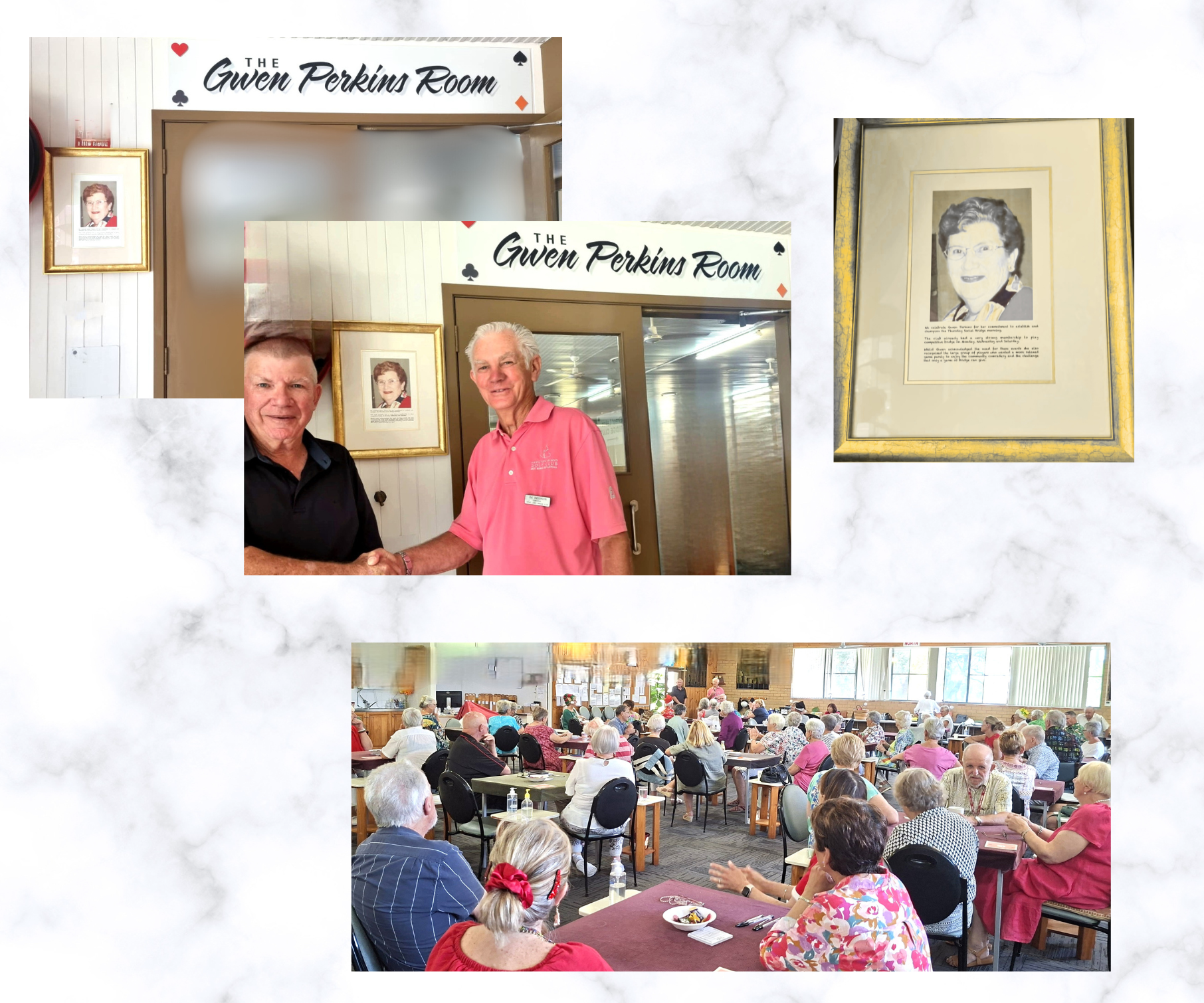 At our last session for 2025, Great Lakes Bridge Club President Uve Andersen named the playing area in memory of a much-loved club founder, Gwen Perkins. Gwen's son thanked the club for the honour, adding that his mother would have been both pleased and humbled by the dedication.